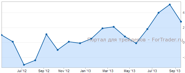 Согласно представленным 17 сентября данным ONS, индекс потребительских цен Великобритании в августе вырос на 0,4% по сравнению с предыдущим месяцем и на 2,8% против аналогичного периода 2012 года. Аналитики ожидали, что индекс вырастет на 0,5% в месячном выражении. В июле CPI Великобритании составлял 0,0% м/м и 2,8% г/г, напоминает журнал ForTrader.