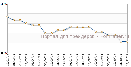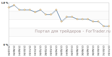 Согласно представленным 15 ноября данным статистического агентства ЕС Eurostat, индекс потребительских цен еврозоны в октябре упал, как и прогнозировалось, на 0,1%по сравнению с предыдущим месяцем и прибавил 0,7% против аналогичного периода 2012 года.Ранее CPI был равен 0,5% м/м и 0,7% г/г, сообщает журнал ForTrader.