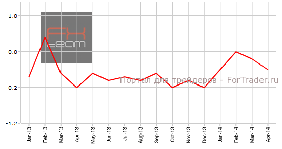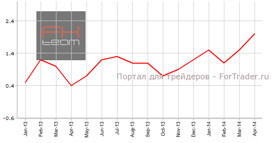 Индекс потребительских цен составил 0.3% м/м (2.0% г/г), совпал с ожиданиями аналитиков рынка. Предыдущее значение было зафиксировано на уровне 0.6% м/м (1.5% г/г). Индекс впервые за два года достиг двухпроцентного роста относительно аналогичного периода в прошлом году.
