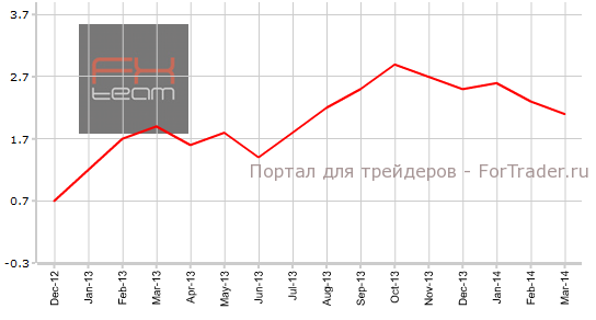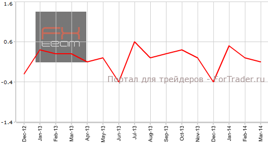 Изменение объема ВВП составило 0.1% м/м (2.1% г/г). Аналитики рынка прогнозировали уровень в 0.1% м/м (2.3% г/г). В феврале значение показателя фиксировалось на отметке 0.2% м/м (2.3% г/г).