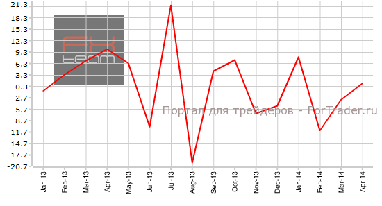 Изменение объема выданных разрешений на строительство составило 1.1% м/м (-13.4% г/г). Аналитики рынка ожидали прироста на уровне 4.1% м/м. В марте значение показателя было зафиксировано на отметке -3.2% м/м (-5.7% г/г).