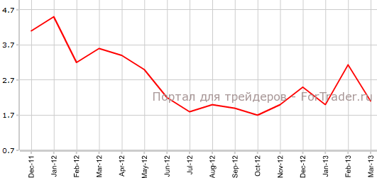 Согласно обнародованным 9 апреля официальным данным, индекс цен потребителей Китая в марте составил 2,1% г/г против 3,2% г/г в феврале. Экономисты прогнозировали значение CPI 2,5%.