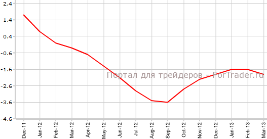 Индекс цен производителей Китая снизился в марте на 1,9% г/г, хотя аналитики ожидали падения на 1,8%. В предыдущем месяце PPI составлял -1,6: г/г, сообщает журнал ForTrader.