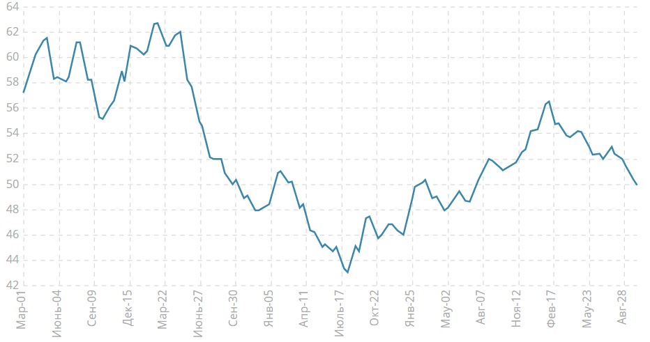 Окончательное значение индекса PMI для производственной сферы Германии было пересмотрено в сентябре до 49.9 пунктов и зафиксировало ухудшение деловой активности в секторе по сравнению с предыдущим месяцем. Эксперты журнала ForTraders.org ожидали пересмотра значения, но не предполагали, что оно окажется ниже отметки в 50 пунктов. Прогноз рынка не предусматривал изменения первоначальной оценки, которая составляла 50.3 пункта.