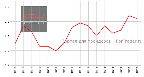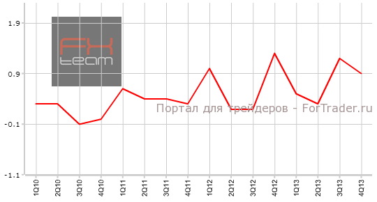 Изменение объема ВВП составило 0.9% кв/кв (3.1% г/г). Рынком ожидались значения на уровне 1.0% кв/кв (3.1% г/г). В 3 квартале показатель находился на отметке 1.2% кв/кв (3.3% г/г). Новозеландский доллар ждет ослабление на фоне опубликованной статистики, считают аналитики журнала ForTrader.