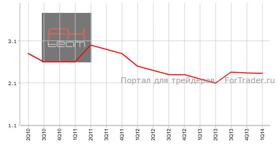 Резервный Банк Новой Зеландии опубликовал данные по ожидаемой инфляции через два года. В 1 квартале 2014 ожидания составили 2.33%. В прошлом месяце 2.34%. Учитывая довольно низкие текущие темпы инфляции в стране, прогнозируемые на среднесрочную перспективу уровень данного показателя является довольно привлекательным, если за рассматриваемые период удастся его достичь, считают аналитики журнала ForTrader.