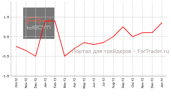 В январе объем розничной торговли вырос на 1.2% м/м (6.2% г/г). Годовой показатель не прогнозировался, а вот месячный ожидался на уровне 0.5% м/м. В декабре рост зафиксирован на отметке 0.7% м/м (5.7% г/г).
