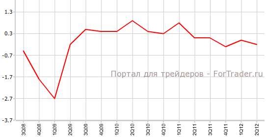Окончательная оценка уровня валового внутреннего продукта региона сошлась с прежними оценками. Согласно представленным 5 октября данным статистического бюро ЕС Eurostat, окончательный ВВП еврозоны во втором квартале упал, как и заявлялось раньше, на 0,2% по сравнению с предыдущим кварталом, и снизился на 0,9% против аналогичного периода 2011 года. Ранее заявлялось о сокращении ВВП во 2-м квартале на 0,5% г/г.
