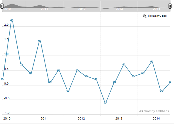 По сравнению с предыдущим годом, немецкая экономика выросла. Скорректированный на цены ВВП в третьем квартале 2014 года вырос на 1.2% по сравнению с третьим кварталом 2013 года.