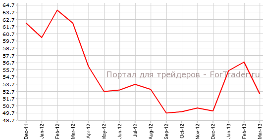 Согласно опубликованной 28 марта информации, индекс менеджеров по снабжению Чикаго с коррекцией составил в марте 52,4 против 56,8 в феврале. Экономисты прогнозировали, что будет зафиксировано значение 56,5, сообщает журнал ForTrader.