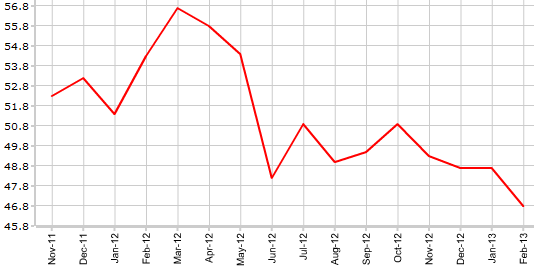 Согласно данным Markit Economics, вышедшим 4 марта, индекс PMI для строительного сектора Соединенного Королевства в феврале составил 46,8 против 48,7 в январе. Как отмечает журнал ForTrader, аналитики ожидали роста индекса до уровня 49.2.