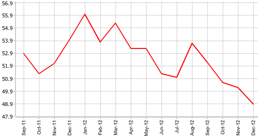 Согласно представленным 4 января данным Markit Economics, индекс менеджеров по снабжению для сферы услуг Великобритании в декабре составил 48,9 против ноябрьского значения 50,2. По прогнозам экономистов, показатель должен был быть зарегистрирован на отметке 50,5.