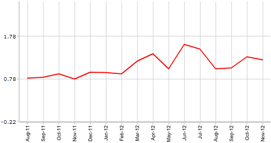 Согласно вышедшим 27 декабря данным UBS, индикатор потребительской активности Швейцарии в ноябре упал до 1,23 против 1,31 в октябре.