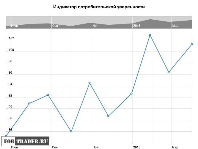 Потребительская уверенность в США выросла в марте 2015 года. Согласно опросу Conference Board индикатор потребительской уверенности составил в марте 101.3 пункта, увеличившись с 98.8 в феврале. Рыночный прогноз находился на уровне 96.6 пунктов.