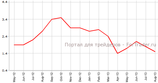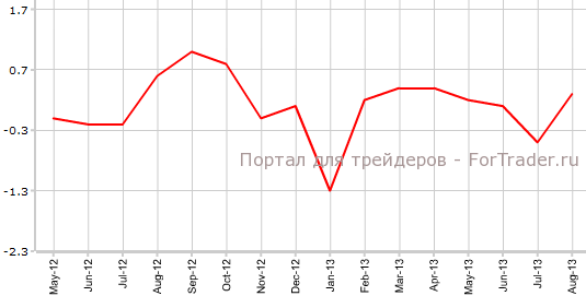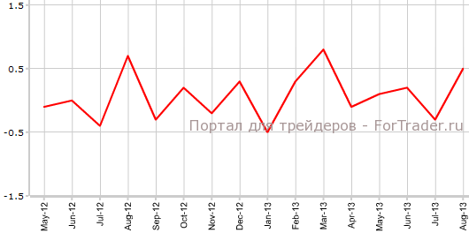 Согласно вышедшим 12 сентября данным Insee, индекс потребительских цен Франции в августе вырос на 0,5% против июля и на 0,9% по сравнению с аналогичным периодом 2012 года. Таким образом, экономисты верно спрогнозировали фактические значения индекса. В июле CPI Франции составлял -0,3% м/м и 1,1% г/г.