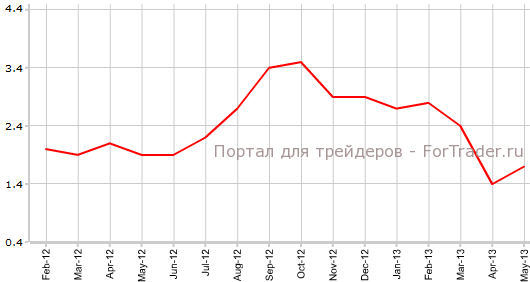 Как свидетельствуют официальные данные, вышедшие 12 июня, индекс потребительских цен Испании в мае поднялся на 0,2% по сравнению с апрелем и на 1,7% против аналогичного периода 2012 года. Экономисты верно спрогнозировали фактические значения. В апреле CPI Испании был равен 0,4% м/м и 1,4% г/г, сообщает журнал ForTrader.