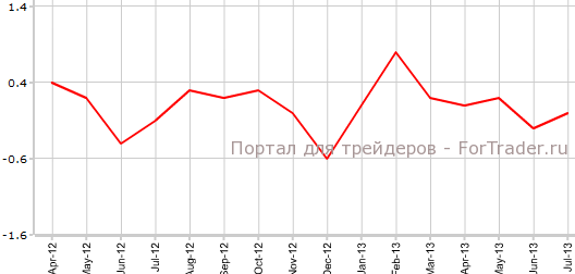 Как свидетельствуют опубликованные 23 августа официальные данные, индекс потребительских цен Канады в июле вырос на 0,1% по сравнению с июнем и на 1,3% против того же периода 2012 года. В предыдущем месяце были зарегистрированы значения 0,0% м/м и -1,2% г/г.