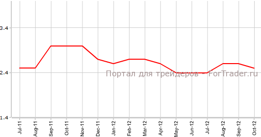 Согласно представленным 31 октября данным статистического агентства ЕС Eurostat, предварительный индекс потребительских цен еврозоны в октябре показал рост на 2,5% против +2,6% в сентябре. Таким образом, значение показателя совпало с прогнозами аналитиков.