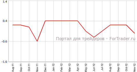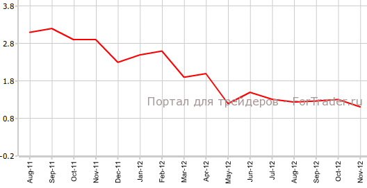 Согласно вышедшей 21 декабря официальной информации, индекс потребительских цен Канады в ноябре снизился на 0,2% по сравнению предыдущим месяцем и поднялся на 0,8% против аналогичного периода 2011 года. Экономисты прогнозировали, что CPI останется без изменений в месячном исчислении и прибавит 1,1% в годовом.