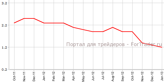 Как отмечает журнал ForTrader, в годовом исчислении CPI Франции устойчиво падает с октября.