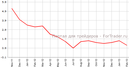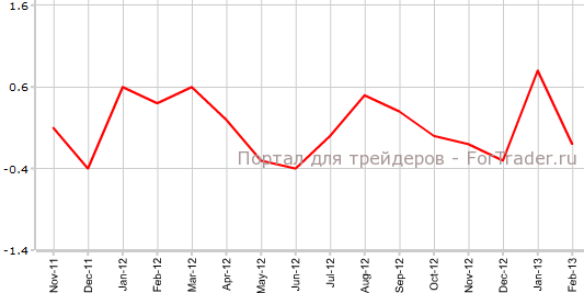Как свидетельствуют опубликованные 20 марта данные, индекс цен производителей Германии в феврале упал на 0,1% по сравнению с январем и поднялся на 1,2% против аналогичного периода 2012 года. Экономисты прогнозировали, что PPI поднимется на 0,2% в месячном исчислении и на 1,5% в годовом.