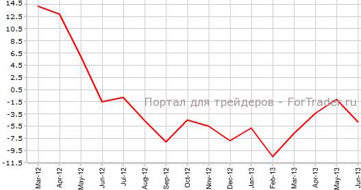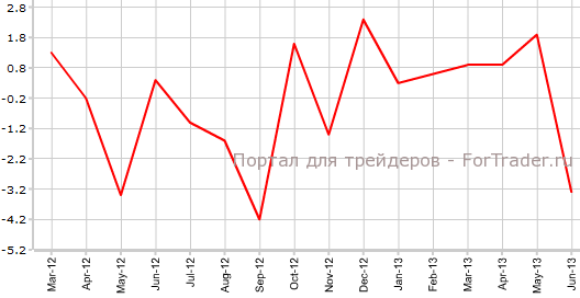 Согласно вышедшим 30 июля официальным данным, предварительное промышленное производство в Японии в июне упало на 3,3% по сравнению с месяцем ранее и 4,8% против аналогичного периода 2012 года. Экономисты прогнозировали, что показатель сократится на 1,4% в месячном выражении и на 2,6% в годовом.