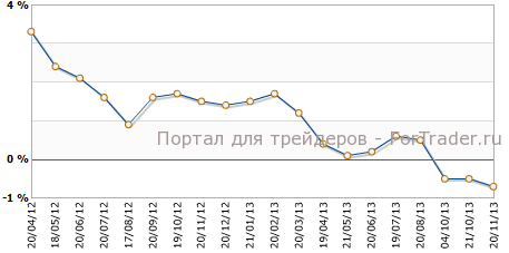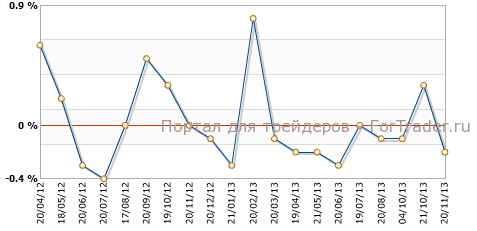 Согласно опубликованным 20 ноября официальным данным, индекс цен производителей Германии в октябре сократился на 0,2% по сравнению с предыдущим месяцем и на 0,7% против аналогичного периода 2012 года. Экономисты прогнозировали, что индекс уменьшится на 0,6% в годовом выражении и прибавит 0,1% в месячном.