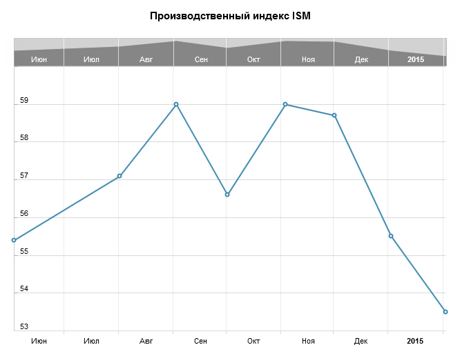 Производственный индекс ISM в США в январе 2015 года составил 53.5%. Прогноз рынка находился на уровне в 54.9%. Предыдущее значение находилось на отметке в 55.1%. Это 20 месяц подряд, когда зарегистрирован рост деловой активности в секторе.
