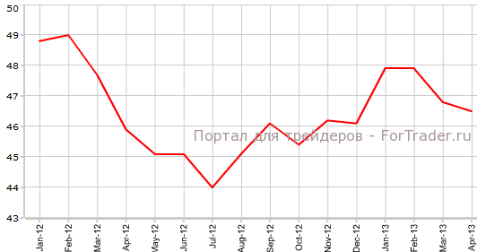 Согласно опубликованным 23 апреля данным Markit, индекс менеджеров по снабжению для производственной сферы еврозоны в апреле упал до уровня 46,5 по сравнению с мартовской отметкой 46,8. Экономисты также прогнозировали снижение, но небольшое — до 46,7.