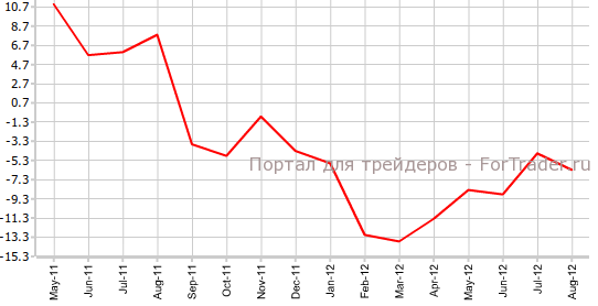 Согласно представленным 19 октября данным агентства статистики Istat, заказы в промышленности Италии в августе прибавили 0,7% против июля и значительно снизились в годовом выражении — на 9,0%. В предыдущем периоде наблюдался месячный рост на 2,9% и годовое снижение на 4,9%.
