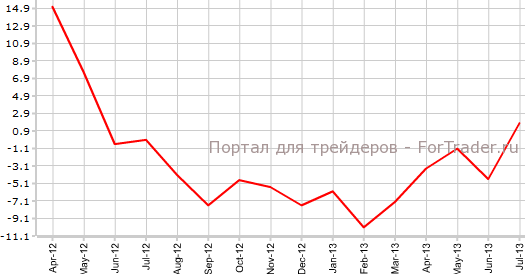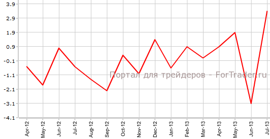 Согласно представленным 13 сентября пересмотренным данным, промышленное производство в Японии в июле поднялось на 3,4% по сравнению с предыдущим месяцем и на 1,8% против того же периода 2012 года. Аналитики ожидали, что показатель сохранит прежние значения, то есть вырастет на 3,2% в месячном выражении и на 1,6% в годовом.
