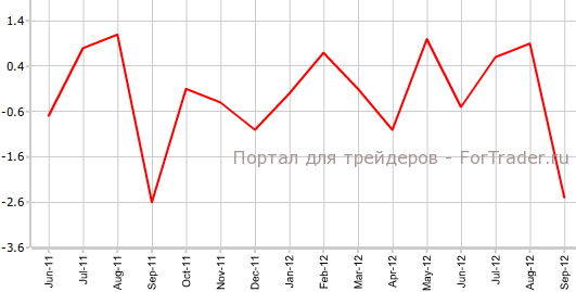 Согласно вышедшим 14 ноября данным статистического агентства ЕС Eurostat, промышленное производство еврозоны в сентябре снизилось на 2,5% по сравнению с августом и на 2,3% против аналогичного периода 2011 года. Таким образом, показатель показал минимум 11-ти месяцев, резко упав после подъема на 0,9% в предыдущем месяце. По сообщениям журнала ForTrader, экономисты прогнозировали меньшее уменьшение промышленного производства, на 2,0% в месячном выражении и на 2,1% в годовом.