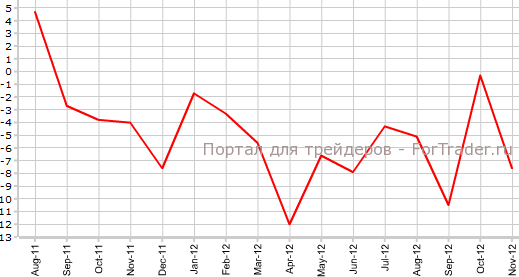 В октябре, отмечает журнал ForTrader, было зафиксировано аналогичное падение в месячном выражении — на 1,1%.