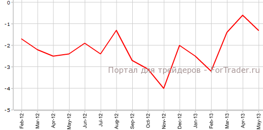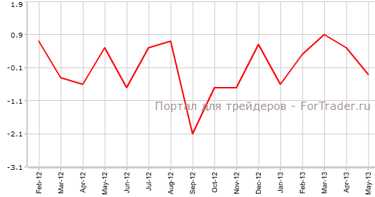 Как свидетельствуют вышедшие 11 июля данные статистического агентства ЕС Eurostat, промышленное производство в еврозоне в мае сократилось на 0,3% по сравнению с месяцем ранее и на 1,3% против мая 2012 года. Экономисты прогнозировали, что показатель упадет на 0,2% в месячном выражении и на 1,3% в годовом.