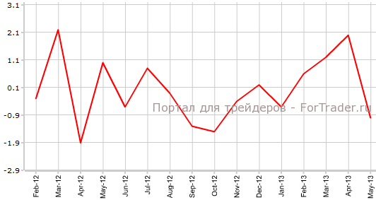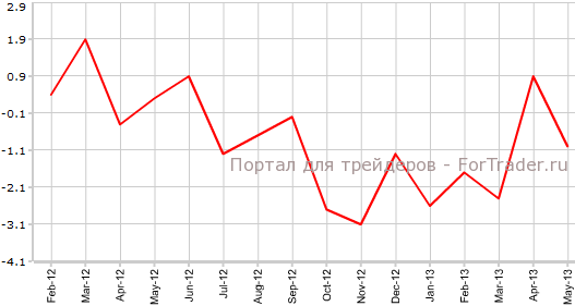 Согласно опубликованным 8 июля официальным данным, промышленное производство в Германии в мае упало на 1,0% по сравнению с предыдущим месяцем и на 1,0% против аналогичного периода 2012 года. Экономисты прогнозировали, что показатель ухудшится на 0,5% в месячном и в годовом выражении.