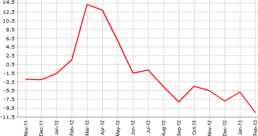 Как свидетельствуют опубликованные 15 апреля официальные данные, промышленное производство в Японии за февраль было пересмотрено до 0,6% роста в месячном выражении против ранее заявленного значения -0,1%. В годовом исчислении показатель также был переосмыслен – -10,5%, все равно оставаясь на минимальной за несколько лет точке.
