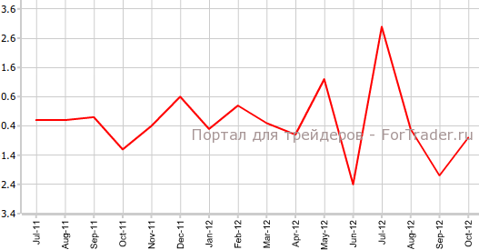 Согласно вышедшим 7 декабря официальным данным, промышленное производство Великобритании в октябре упало на 0,8% по сравнению с предыдущим месяцем и на 3,0% против аналогичного периода 2011 года. В сентябре, как гласит пересмотренная статистика, промышленное производство составляло -2,1% м/м и 3,2% г/г. Однако, аналитики ждали в октябре куда лучших результатов показателя — роста на 0,8% в месячном исчислении и на 0,6% в годовом, сообщает журнал ForTrader.
