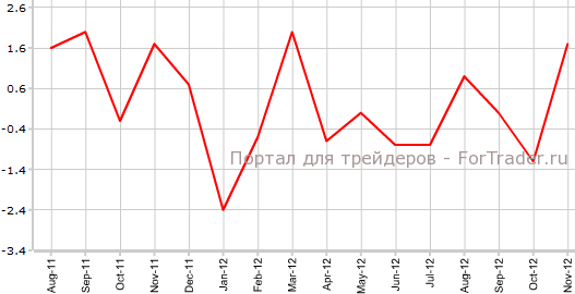 Согласно вышедшим 18 января данным, поставки в производственной сфере Канады в ноябре увеличились на 1,7% по сравнению с октябрем и на 0,5% против аналогичного периода 2011 года. Такие фактические значения показателя оказались значительно выше прогнозов экономистов, предполагавших рост в месячном выражении до отметки 0,9%.