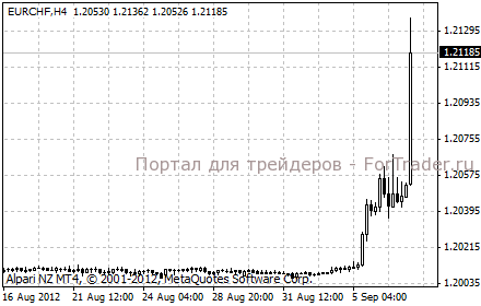 Резкий рост курса валютной пары евро/франк (EUR/CHF) озадачил трейдеров всего мира 7 сентября. Швейцарский национальный банк отказался прокомментировать данное событие напрямую, однако заметил, что рост иностранных валют против швейцарского франка может быть связан с защитой национальной валюты от образования новых максимумов.