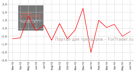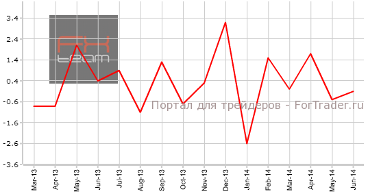 Изменение объёма розничной торговли без учета затрат на топливо зафиксировано на отметке -0.1% м/м (4.0% г/г), что также слабее прогноза, составлявшего 0.3% м/м (4.6% г/г). В мае фиксировалось падение на -0.5% м/м (4.5% г/г).