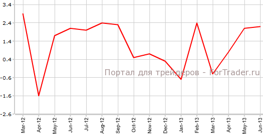 Согласно вышедшим 18 июля данным ONS, розничные продажи Великобритании в июне выросли на 0,2% по сравнению с предыдущим месяцем и на 2,2% против аналогичного периода 2012 года. Аналитики ожидали, что показатель поднимется на 0,2% в месячном выражении и на 1,8% в годовом. В мае розничные продажи Великобритании составляли 2,1% м/м и 2,1% г/г, отмечает журнал ForTrader.