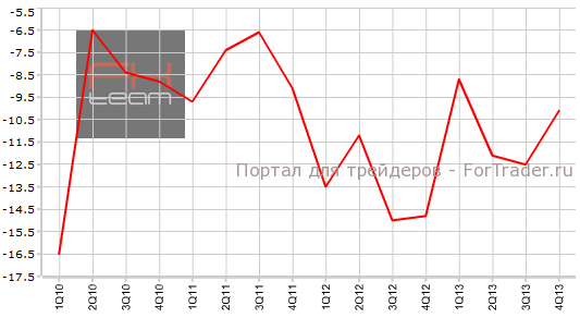 Сальдо платежного баланса в четвертом квартале 2013 года осталось отрицательным, однако вышло на уровне -10,1B, что меньше предыдущего показателя -12,5B, что, по данным информационно-аналитического отдела журнала ForTrader, совпало с прогнозами аналитиков.