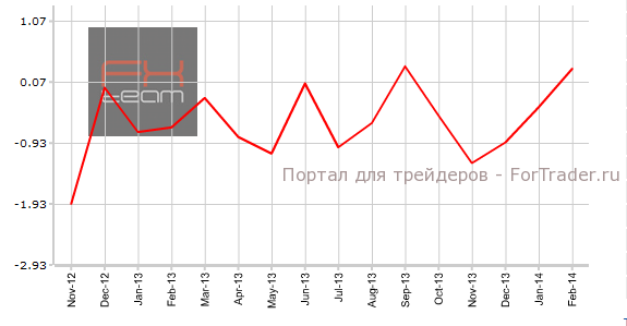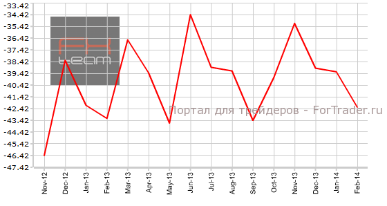 Сальдо баланса внешней торговли в США составило -42.3B. Прогноз находился на уровне -38.3B. В январе дефицит был меньшим, на уровне 39.28B. Курс доллара будет ослаблен в связи с данной статистикой, считают аналитики журнала ForTrader.