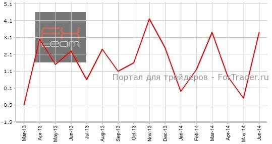 Изменение реального объема розничной торговли зафиксировано на отметке 3.4% г/г. Прогноз составлял 0.7% г/г. Предыдущее значение находилось на уровне -0.5% г/г.
