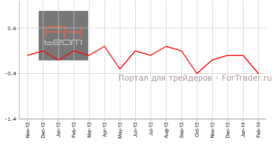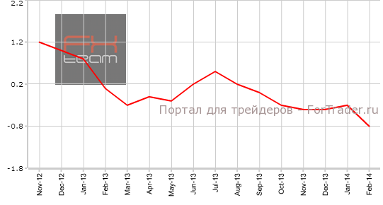 Индекс цен производителей и импорта составил -0.4% м/м (-0.8% г/г), при прогнозе 0.3% м/м (-0.5% г/г). Предыдущее значение было зафиксировано на уровне 0.0% м/м (-0.3% г/г). По мнению аналитиков журнала ForTrader, это окажется ослабляющее действие на курс швейцарского франка.