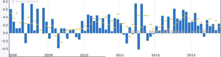 Индекс потребительских цен Швейцарии в сентябре вырос на 0,3% по сравнению с предыдущим месяцем и упал на 0,1% против аналогичного периода 2012 года. Экономисты прогнозировали, что индекс поднимется на 0,2% в месячном выражении и снизится на 0,1% в годовом. В августе CPI Швейцарии составлял -0,1% м/м и 0,0% г/г, сообщает журнал ForTrader.