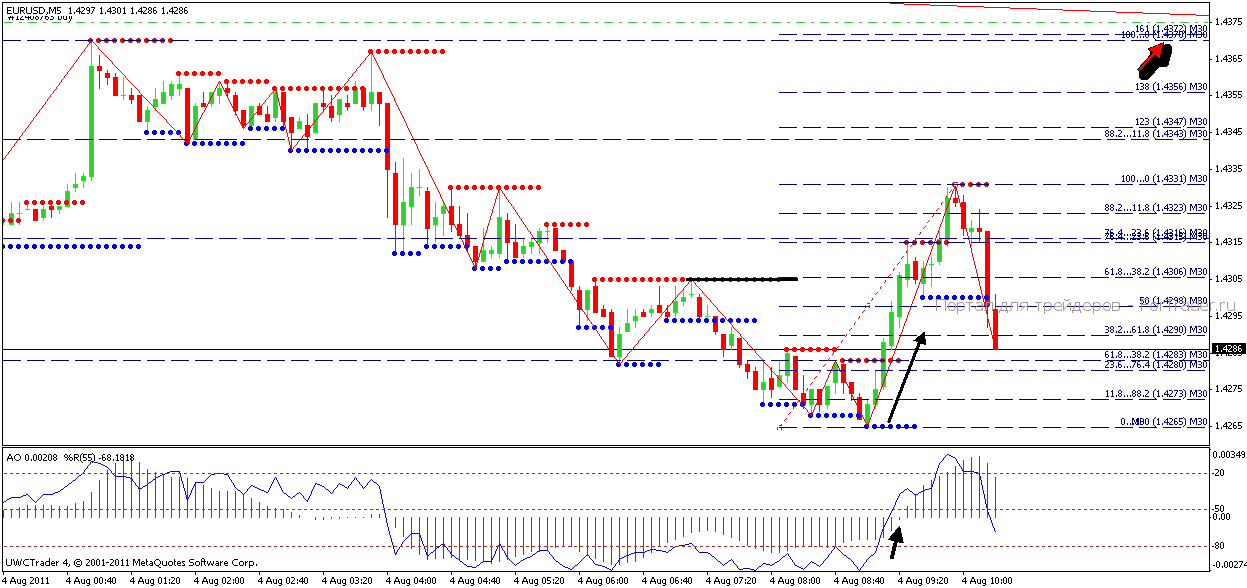 Отложенный ордер на покупку в точке 1.4335 с целью 1.4370, стоп лоссом или замком в точке 1.4245