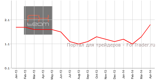 Bureau of Labor Statistics опубликовало данные по индексу цен производителей. Значение индекса составило 0.6% м/м (2.1% г/г). Рынок прогнозировал значения на уровне 0.2% м/м (1.7% г/г). В марте рост цен составлял 0.5% м/м (1.4% г/г).