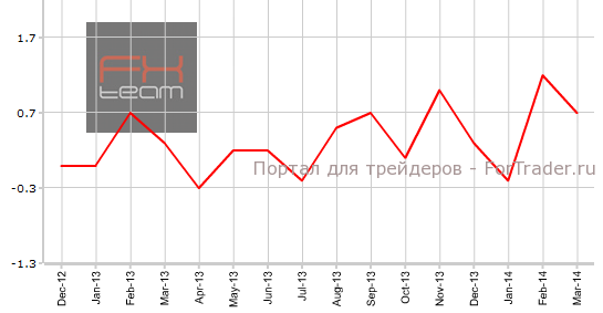 Изменение объема промышленного производства составило 0.7% м/м (3.8% г/г), при прогнозе 0.5% м/м. В феврале значение составляло 1.2% м/м (2.8% г/г).