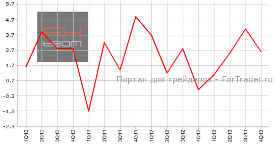 Ценовой индекс ВВП составил 1.6% кв/кв, совпав с прогнозом 1.6% кв/кв. В 3 квартале показатель составил 1.6% кв/кв.